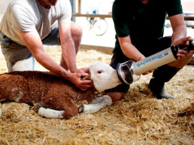 βοηθά τις αγελάδες να σηκωθούν μετά τον τοκετό